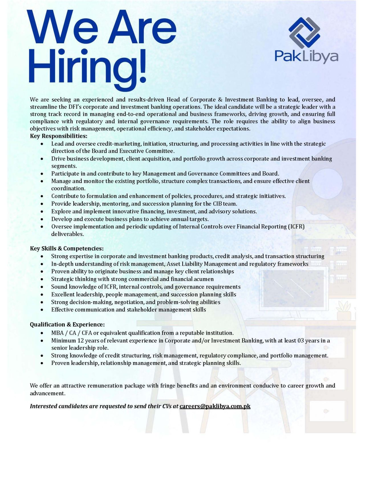 Disclaimer: CFA Society Pakistan (including its Board of Directors and Members) provides this job placement service as a benefit to its members, but it is not a placement agency nor does it operate as a matching service. CFA Society Pakistan will not take liability for the contents of any of the information provided herein.