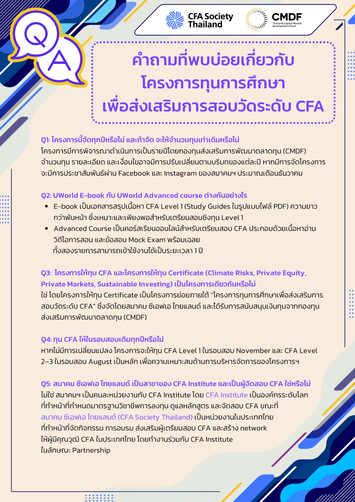 โครงการทุนการศึกษาเพื่อส่งเสริมการสอบวัดระดับ CFA และอบรมหลักสูตรสากล